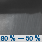 Sunrise 7:01 am A 20 percent chance of showers before 7am. Partly sunny, with a high near 54. Northeast wind around 5 mph.