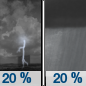 Sunset 4:55 pm A slight chance of showers and thunderstorms. Partly cloudy, with a low around 50. Chance of precipitation is 20%.